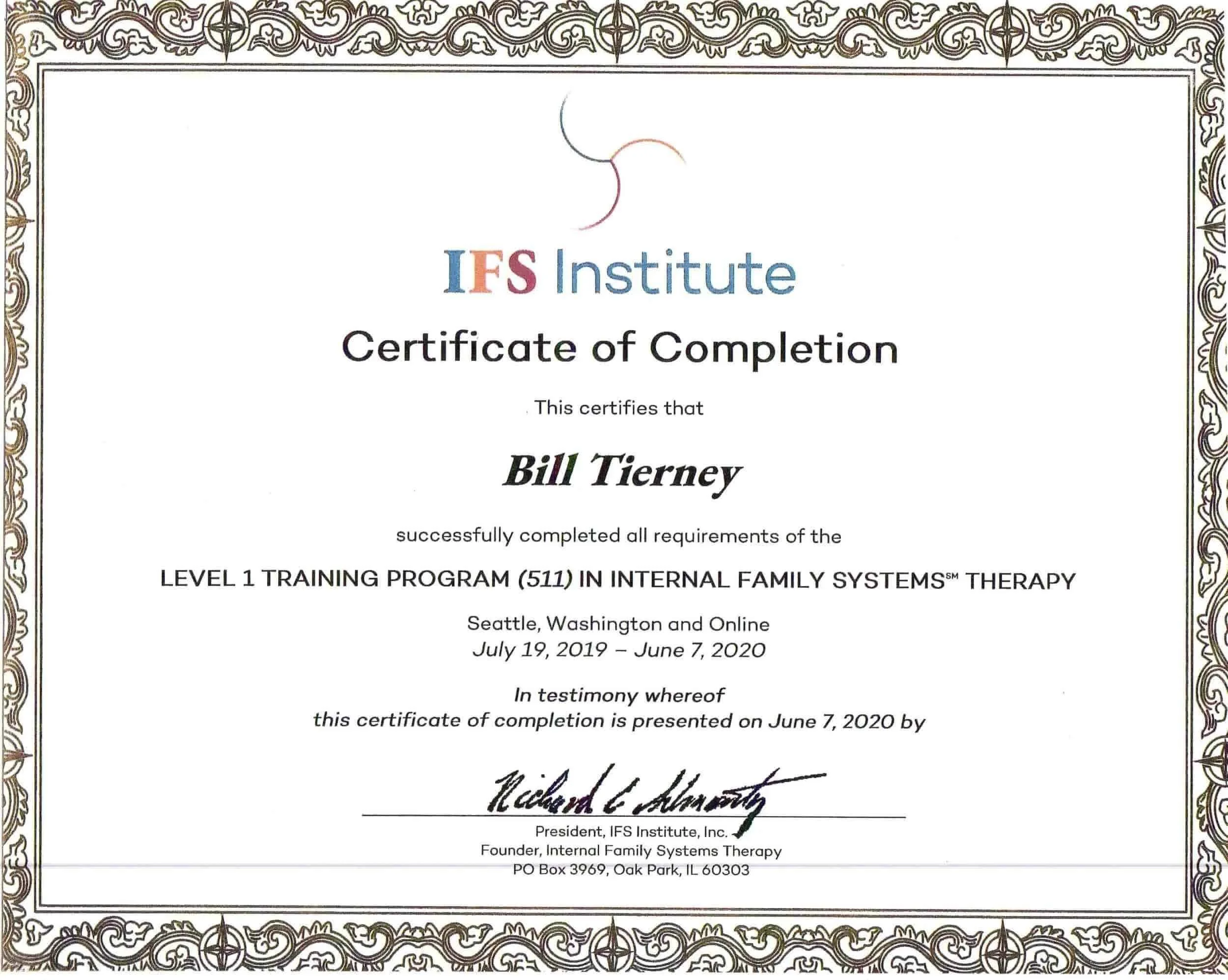 I have completed IFS Institute Levels 1 and 2 training in the IFS Model (Internal Family Systems) including the Relationship protocol Intimacy From the Inside Out and am a Certified IFS Practitioner. I have also completed the IFS of Canada Stepping Stone program.